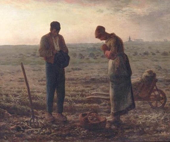 Today, I’m sharing the poem “Angelus” that I wrote in February, 2020 in response to an Ekphrastic Review Writing Challenge. I wrote a post about it at the time. I constructed a narrative inspired by The Angelus, the 1859 painting by the French artist, Jean-Francois Millet, shown below. I used part of the Angelus prayer in my poem. My home parish when I was growing up rang Angelus bells three times a day as a reminder to pray this prayer. Our pattern was to ring the bell in three groups of three followed by a group of nine. The Angelus rang at 6 AM, noon, and 6 PM, which I used in the poem. I have no idea what the tradition was in France at the time of painting but it worked for the poem, so poetic license?