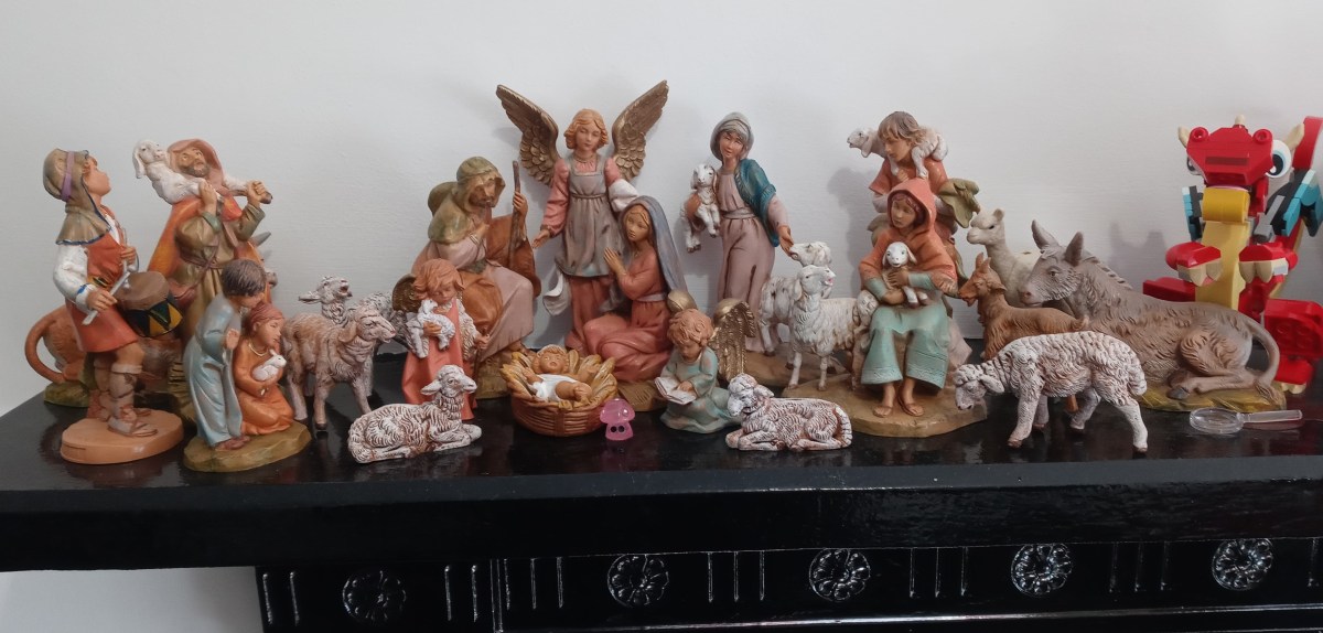 While the zebra left the creche, a Lego dragon has joined the scene, along with a mushroom at the baby Jesus’s feet and a mysterious magnifying glass.