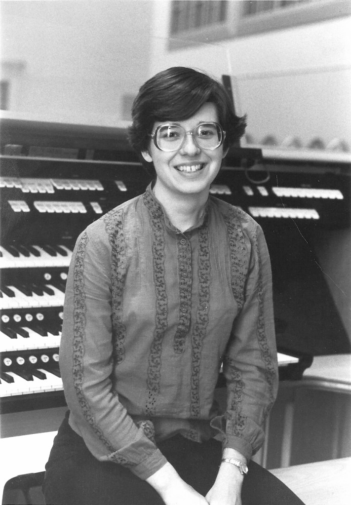 Joanne Corey at the Austin organ console in John M. Greene Hall, Smith College, Northampton, Massachusetts, 1981 (Photo credit: Mary Wallace Strizek)