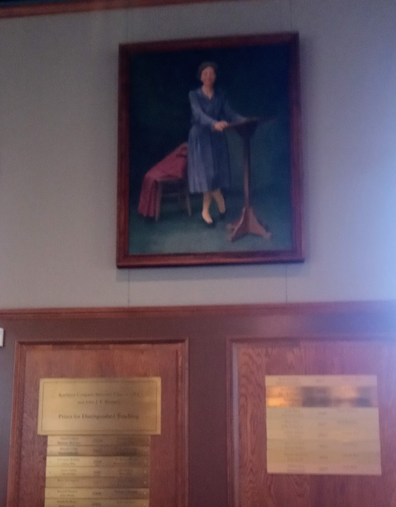 I also enjoyed spending time in some renovated spaces on campus. The opening of VOICES was in Alumnae House in the same room where we held our wedding reception in 1982. Later presentations were in Neilson Library. The photo below was taken in the Browsing Room and shows the official portrait of Jill Kerr Conway, the first woman president of Smith, who was president when I was a student.