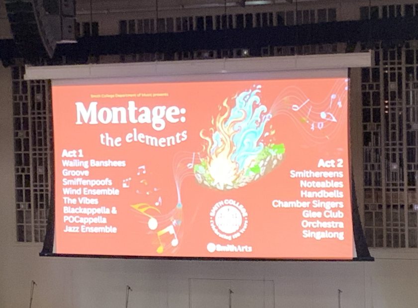 I ended the day with the Montage concert, which brought together musical groups now active on campus, over half of which were not in existence when I was a student. My favorite new-to-me group was the Wailing Banshees, Smith’s Celtic music ensemble. I loved seeing that the handbell choir, which was very small in my day, has grown to enable ringing five octaves. A newer tradition that has developed is ending with an audience participation piece. We joined in with “Let There Be Peace on Earth” with the Glee Club and Orchestra, which, I admit, made me teary.