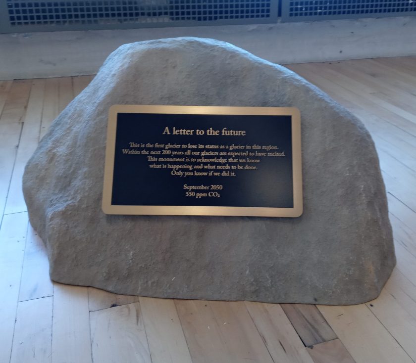 It is unusually warm for early October this year, which is, unfortunately, riling up some of my health issues, but I did manage to spend some time in the buildings at MASS MoCA (Massachusetts Museum of Contemporary Art) yesterday. Although I wasn’t putting pressure on myself to write, I was so moved by the Ohan Breiding Belly of a Glacier exhibit that I sat in the gallery and drafted a poem about it. Bonus: the centerpiece of the exhibit is a film and then I was able to sit in the related exhibit room to write so I got to rest and not have to worry about keeping my balance for a long bit.