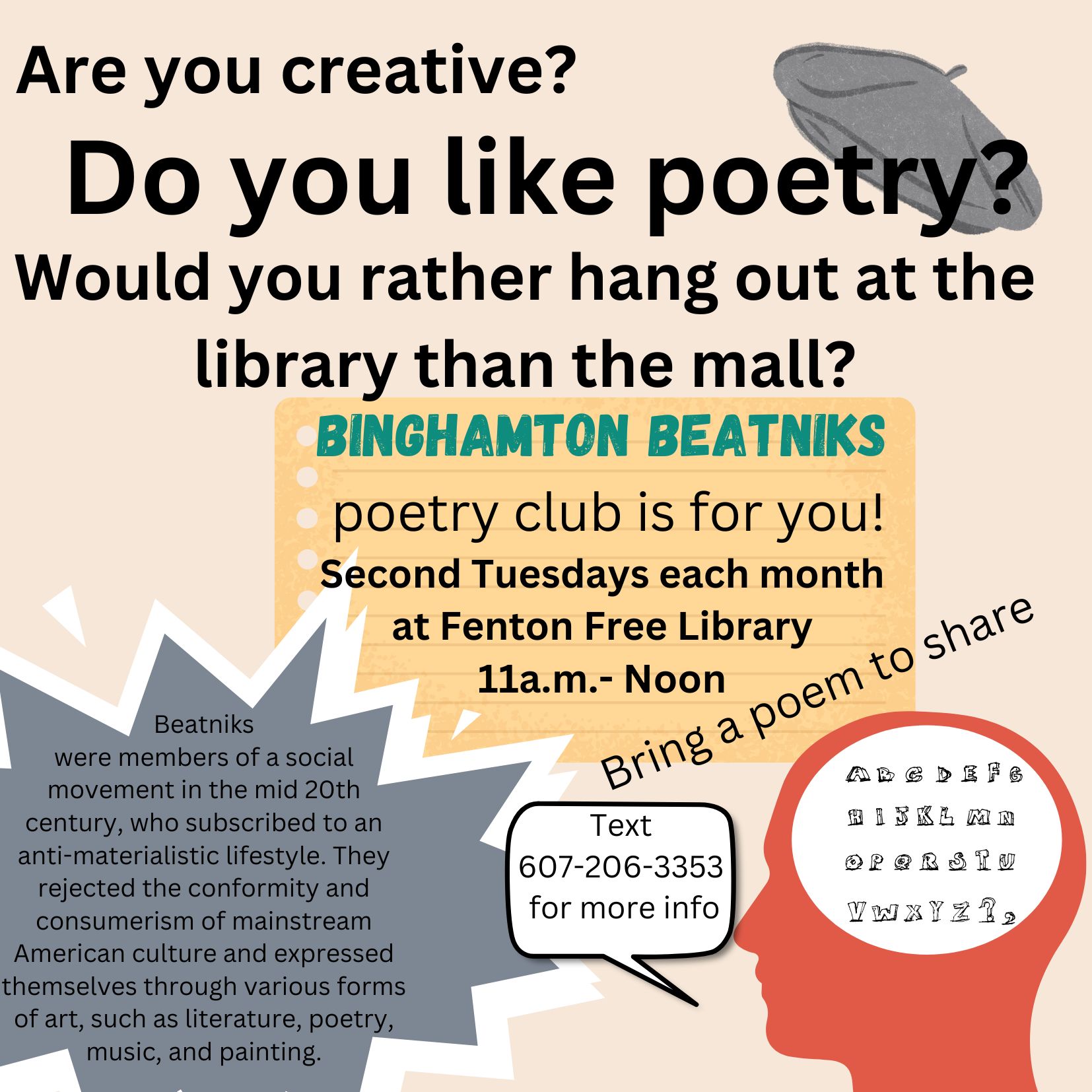 Merrill and Suzanne met decades ago in Binghamton, where Suzanne grew up and where Merrill re-located for graduate school and then settled. Merrill grew up in New York City and Suzanne has lived in that area for over thirty years. Their mirrored biographies drew together a fun mix of people in attendance, including Merrill’s Grapevine poet-friends and some of Suzanne’s high school classmates. We filled the Artisan Gallery at the Broome County Arts Council, commandeering extra chairs as needed. Bonus: In addition to poetry, we enjoyed the BCAC Members’ Juried Exhibition on display this month.