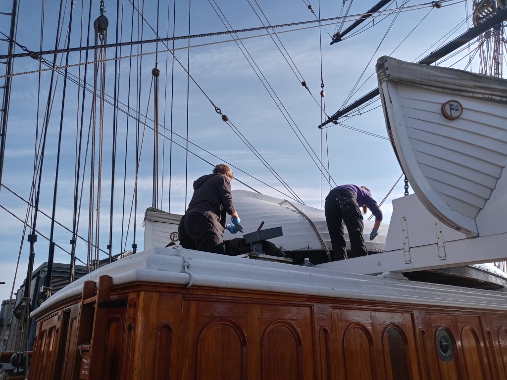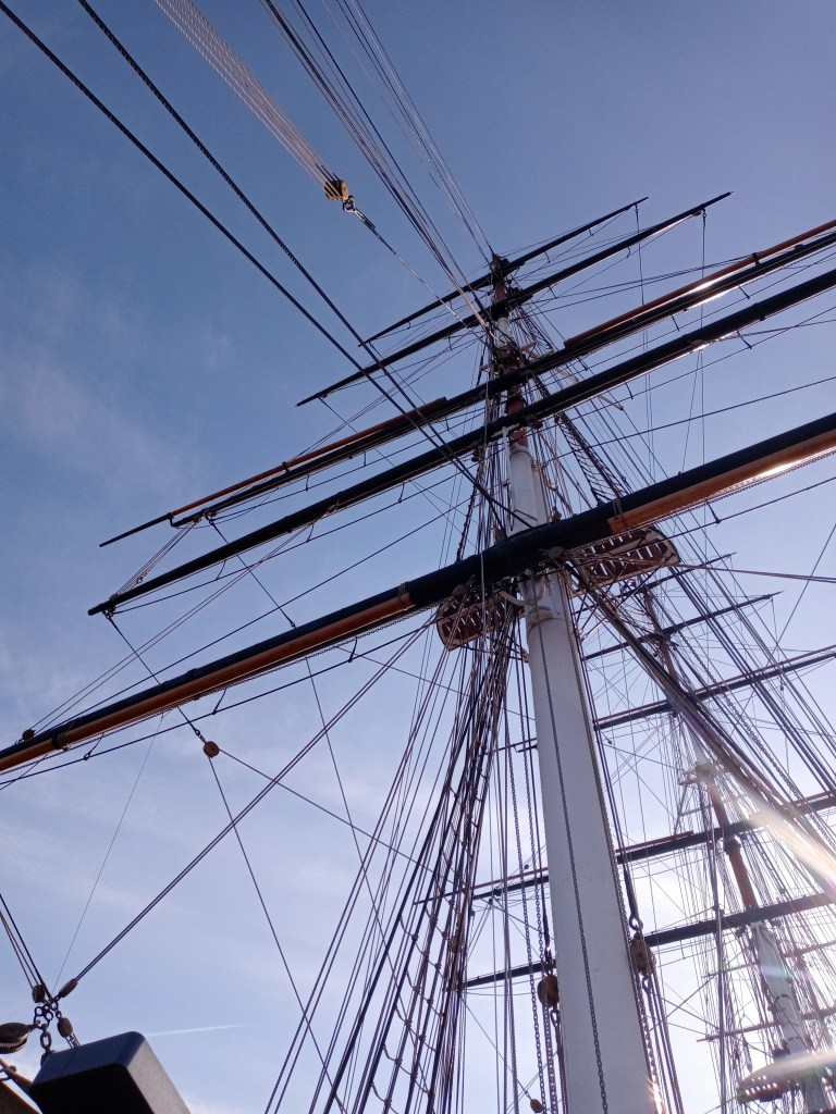 The Cutty Sark is not afloat these days, but still takes lots of maintenance. It’s hard to see, but there is a person near the top of this mast.