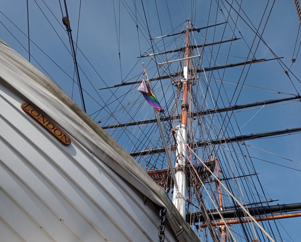 February is LGBT+ History Month in the UK and the Cutty Sark was participating by flying the Pride flag.